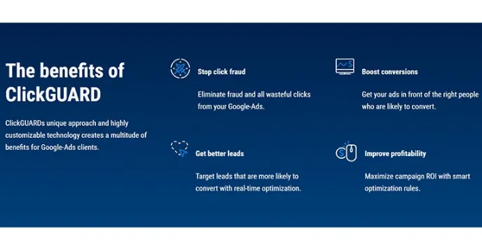 ClickGuard deletes worthless clicks by detecting fake agents, so website owners only pay for valid clicks for improved conversion rates. It identifies the malicious clicks and reports them with a flag.