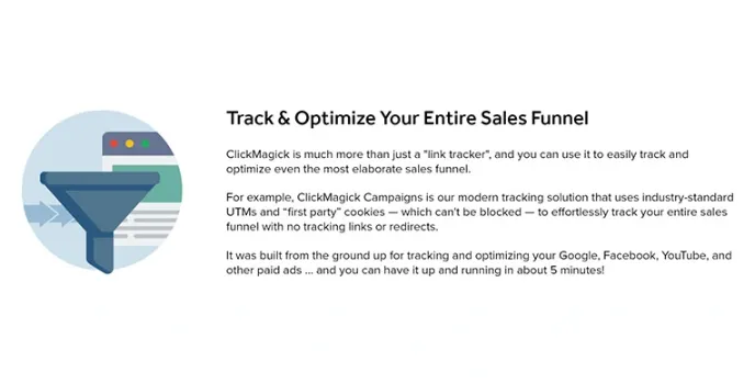 If you check the link tracking features, try ClickMagick that efficiently tracks and optimizes business sales due to modern tracking solutions. These modern solutions are helpful to track entire business sales quickly on social media like Google, Facebook, and Youtube. It can calculate results within 5 minutes.