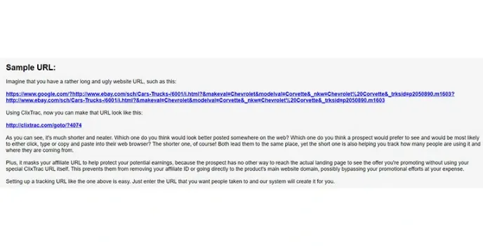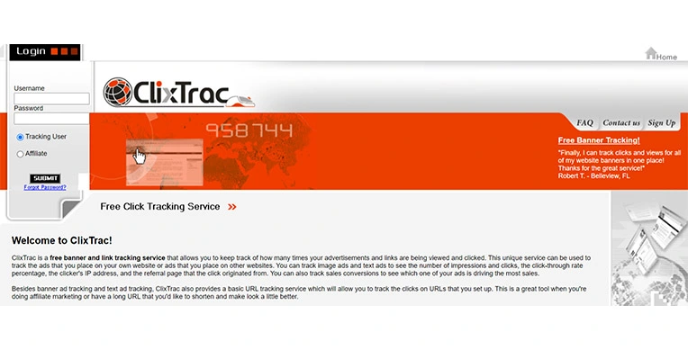 ClixTrac offers a simple URL tracking service in addition to banner and text ad tracking. This allows you to monitor the clicks on URLs that you create. When you're doing affiliate marketing or have a long URL that you'd like to shorten and make a little better, this is a great tool to use. It is the best link tracker.