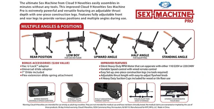 Adult toys are pretty common in the advanced western world. People often use these adult toys for having fun in their free time alone or with their loved ones. Many products are introduced, but it is hard to find one perfect product for experiencing great pleasure. If you search for a product that gives ultimate pleasure, Cloud 9 Pro III sex machine is the best option. It has suction cups that help the product stay at one place with moving for having uninterrupted fun. For more information, go through the features mentioned below.