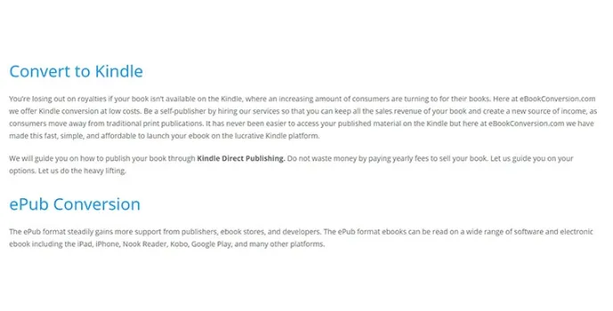 The ebook converter software is perfect for conversions of various files. They support nearly all audio, video, documents, ebooks, images, spreadsheets, and other presentation formats as well.
