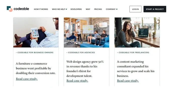 Codeable is one of the best freelancer marketing websites with behavioral experience and live coding tests for the user to make them more skillful. Before using the site, you need to go with a technical exam that is assessed by WordPress experts. With 45 day trails periods for real-time projects, any developer can use it, and there they cannot find any complication. Besides this, it is perfect for any WordPress developer.