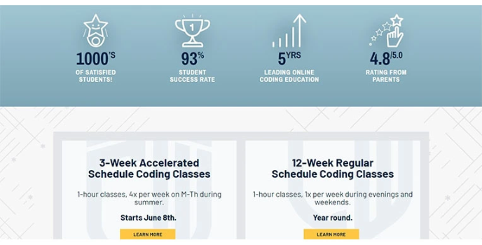 They have an outstanding team of teachers who use the student-first approach. They teach real programming languages like Python, Java, HTML/CSS, and JavaScript. All their best coding tools for kids and adults are customized to suit the age groups.
