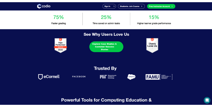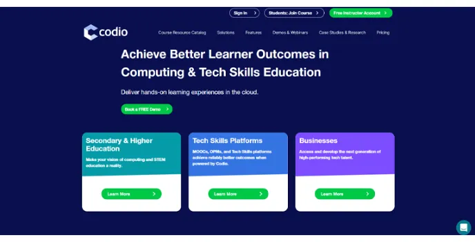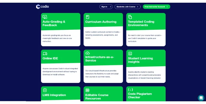 CodeGrade and MOSS are top alternatives of Codio. These platforms are best for students and are compatible with all major coding languages like C, C++, Java, and others.