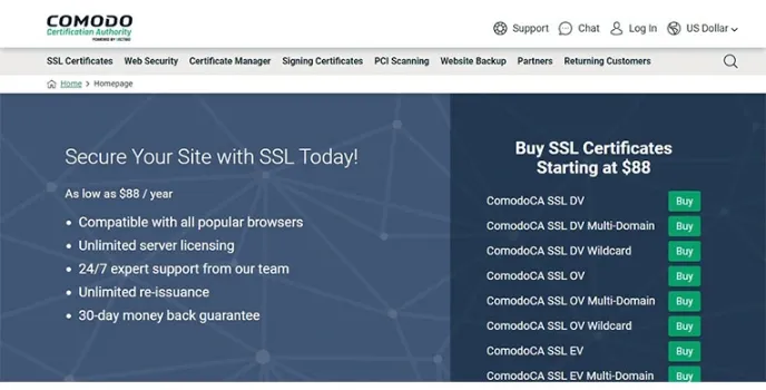 It is perfect for small to large businesses with extensive SSL certificates to meet their needs. Three types of cheap SSL certificates are available for purchase on the COMODO SSL store, including Comodo PositiveSSL, Comodo InstantSSLPremium, and Comodo PositiveSSL EV.