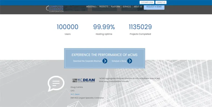For the businesses searching for experts in the development and delivery of Cloud Construction Software Solutions, Computer Guidance Corporation is the one for them. The group has a proven track record of helping commercial contractors achieve quantifiable benefits due to implementing the eCMS Construction ERP Software solutions and accompanying business process consulting services the group.