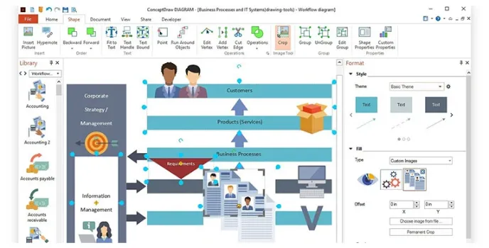 Every field in todayβs world is more or less dealing with pictures or images. On a website, a clear image catches more traffic than others. Image editing softwares helps in improving the image digitally. ConceptDraw Diagram helps overcome the problems of blurry pictures, illustrations on the photographs, and so on.