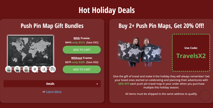You can find extra pins on Conquest Maps if you need more to mark the places on the map. Apart from the normal pins, you can also find pins in the form of houses and heart-shaped to mark the places you love. These pins were hand-made for accuracy and available in three different colors. You can also find push-pin stickers on Conquest Maps along with the pins. To make your map more attractive, you can get wood frames; to make it more detailed, you can get expansion boards.