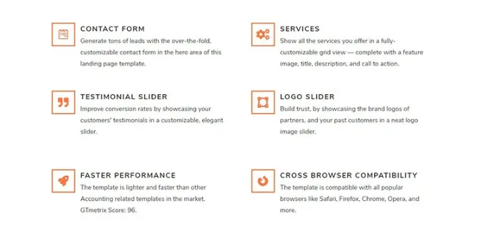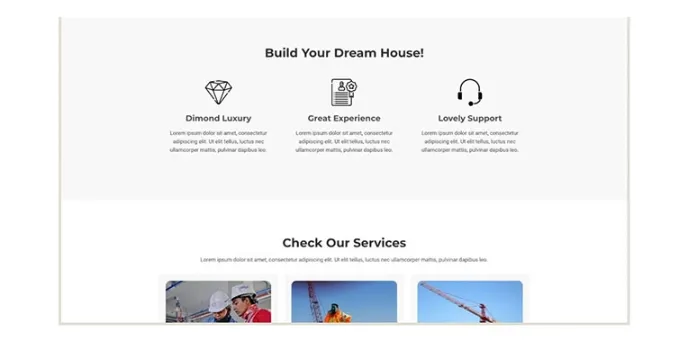 Features of Construction Landing Page Theme