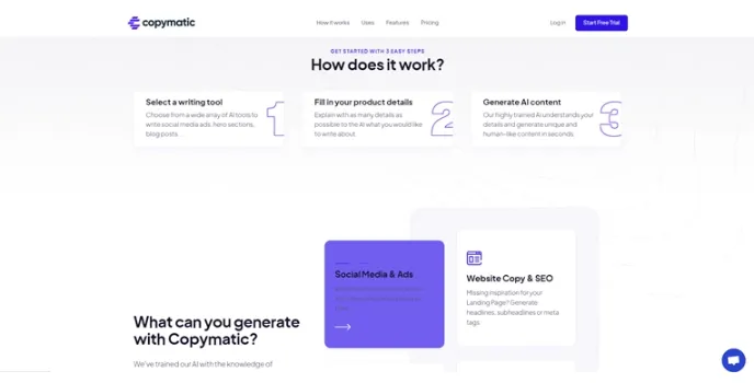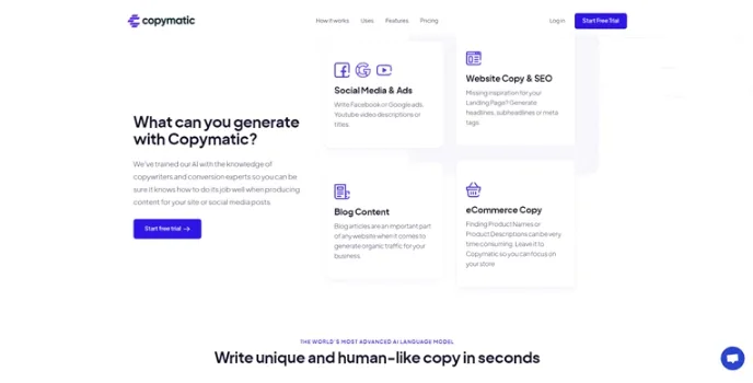 Copymatic can be used for multiple purposes like creating ads where users can write Google or Facebook ads and even video descriptions or their titles. It can generate headlines, meta tags, and organic traffic inside the business it is very important to write blog articles. This AI essay writing tool helps you find product names and descriptions, which would be time-consuming.