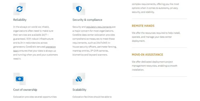 Features of Coresite Hosting