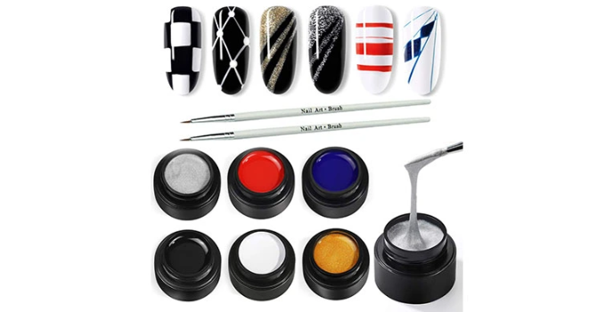 Coscelia product is excellent for thick adhesive viscosity, which gives no shrinking at all upto four weeks time. All the color sets come in 5 ml size bottles along with two beautiful brushes. The product is the best choice for long-lasting spider nail gel arts that is public under UV and LED lamps. It has a painting gel nail polish that is very easy to use and handle and draw full lines, hand paintings, and striping over nails.