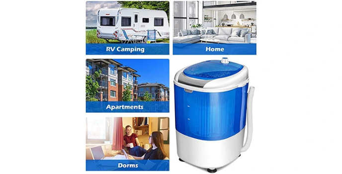 Are you confused to consider between bulk and small size washing machines? Don't worry! The Costway Mini portable cloth washer is a user-friendly appliance that can often use the tool in every home. This clothes washer is a brand new washer and dryer featured for convenient usage. The single spin basket with 10 minutes timer control aids to meet different needs! When it comes to design, it's an elegant blue and white combination crafting product that gives stunning additions for apartments, dorms, and more. The high-rated 5.5 lbs washing capacity container permits you an effective spin facility. Compared to top-load washing machines portable washer equipped with safety cleaning buttons along with unbalancing detection for consistent use.