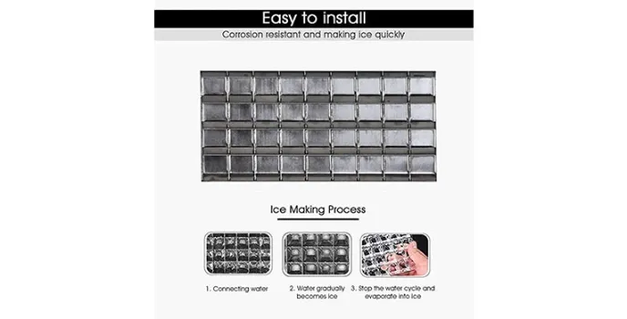 The commercial ice maker is quite convenient and efficient and makes 48 clear ice cubes for one cycle within 12 to 18 minutes. The icemaker is equipped with a powerful 200W compressor for cooling and is a great addition to your bars and kitchens. It makes for easy operations and comes with a full set of accessories such as an operation panel with the timer, clean buttons for controlling the process of ice making. It also includes an ice shovel for transferring ice cubes conveniently and a 120-inch water line with a quick connector to the faucet.