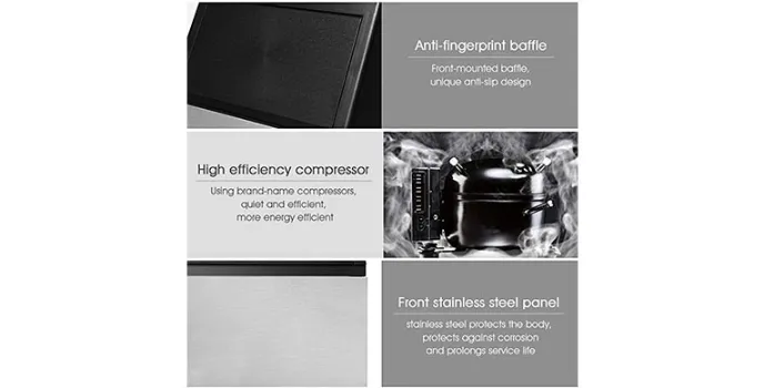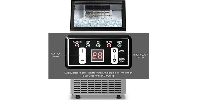 The countertop ice maker comes in a freestanding design, and you can either set it alone or on a countertop as per your convenience and requirements. It is built with stainless steel, similar to Foster, and is an energy-conserving machine with no water waste mechanism. You can quickly and conveniently connect it to a water pipe and start your ice-making process with utmost convenience. The ice maker comes with automatic operations and makes clear bullet-shaped ice. It offers a freestanding installation, wherein you can place it anywhere you want and make sure it is near a water pipe or drain. This commercial ice maker from Costzon comes with a high-efficiency compressor and is perfect for restaurants, hotels, and shopping malls. It comes in a stainless steel body and helps protect against any corrosion. Moreover, it includes a timer setting function, which makes it extremely easy to control, similar to Vevor.