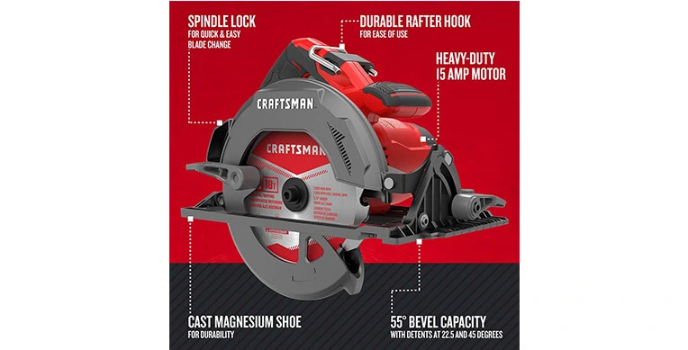 The Craftsman power miter saw makes for high performance and cuts through a variety of materials. This tool runs at 5500 rpms for aggressive and fast cutting. It comes packed with power and performance and is required for perfect craftsmanship.