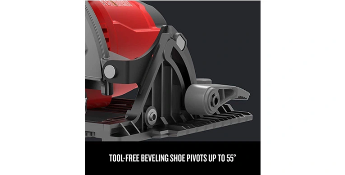 The electric miter saw comes with a high-performance motor and makes for aggressive and quick cutting. It comes with 71/4 inches 18T carbide-tipped blade with up to 21/8 inches capacity for two times the material. Moreover, the tool-free beveling shoe pivots easily up to 55 degrees and for angled cuts with detents at 22.5 and 45-degree ease of use.