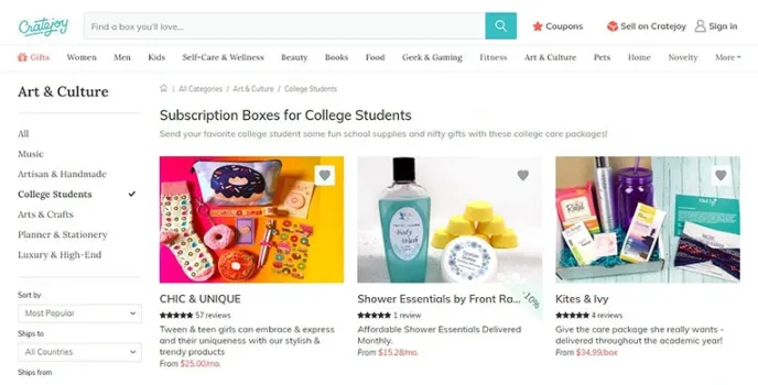 Gone are the days where students have to spend hours and days searching for every little essential they need for daily activities. Cratejoy is an online destination where one can get a membership to order everything they want on their fingertips. Here, on this website, they can avail high-quality products like snacks, stationery items, clothes, and more. All these items are delivered to their doorstep after a few days of ordering in subscription boxes for students.