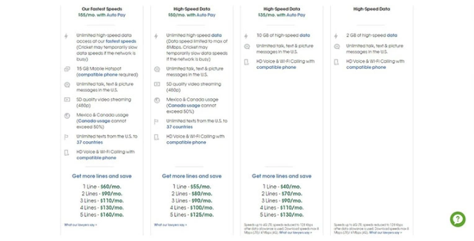 Cricket Wireless offers premium plans with unlimited data with a very wide reach, making it among the market's best service providers. Their plans are very flexible, making them convenient for use. Similar products in the market would include Tello Mobile and Pure Talk USA.