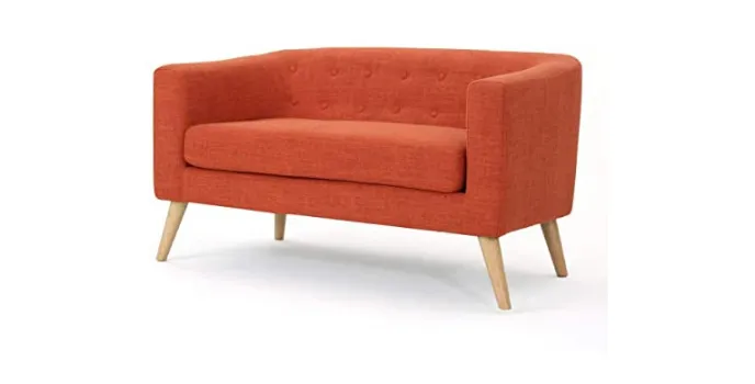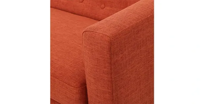 - Beautifully muted orange colour sofa