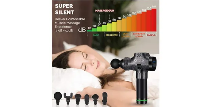 The Cryotex Massage Gun is one of the calmest back rub weapons available. Its 24-volt, high-force brushless engine keeps clamor somewhere in the range of 35 and 55 decibels. Indeed, even on the most noteworthy of its three diverse speed settings, it's calmer than the least setting of most other back rub weapons.