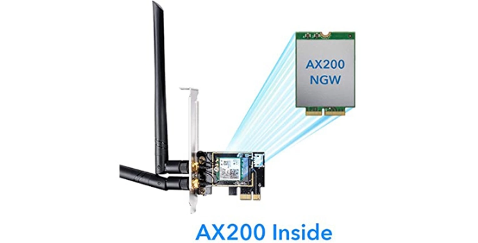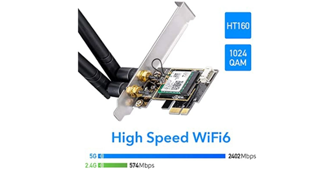 This wifi PCIe card is combined with AX200 wifi 6 card that performs well enough to support faster wifi connection with a strong signal. If it is paired with a wifi 6 router, the speed of the internet is likely to exceed 2402 Mbps.
