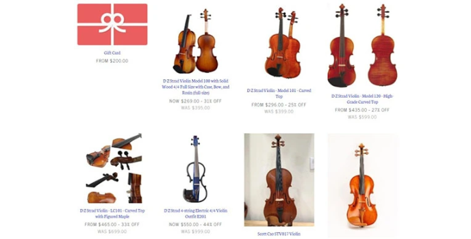 The DZ Strad Violin Shop is one of the best Online Stores to buy Musical Instruments that can provide various accessories with violin bows and various other violins that come up in the music store featuring a full inventory of classical and modern violins, cellos, violas. It has a wide array of unique accessories such as bows, cases, strings, tuners, backpacks.