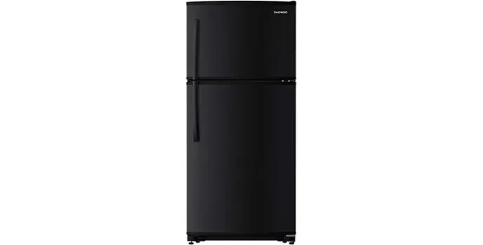 Daewoo Top-freezer refrigerator has LED lights inside to complement the full glass interior and make it easy for users to take out items in the dark. It is of medium size with dimensions 32.3*29.8*66.6 inches and an internal storage capacity of 18 cubic feet ideal for a small family. With such a big storage space, the items can be arranged in an organized way, and there is very little chance of spilling and leaking. This fridge has an airflow technology that allows fresh cold air to pass through every nook and cranny of the fridge to avoid bad odor. It also features auto-defrost technology.