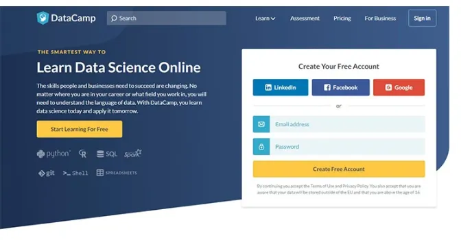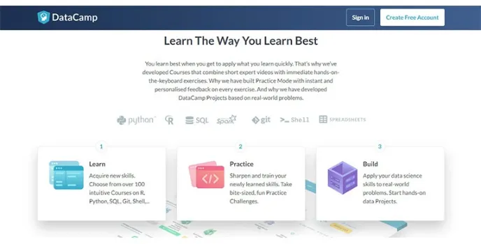 DataCamp is one of the best language learning platforms as it provides you with specific details and concepts in depth. Users get more knowledge about how to manipulate the data and focus more on statistics. It provides the best study material, expert mentors, facilities to learn data science in the best way.