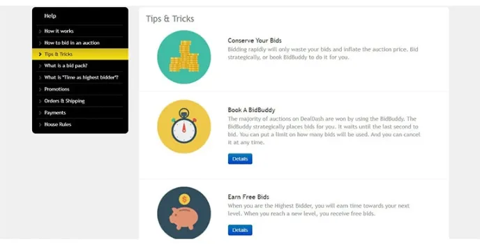 The foremost thing in an auction site every shopper needs to do is buy bids, which are credits to bid an item every time the auction is on the site. A predefined time of 10 seconds is for every auctioned item before the bid. As soon as the time is over, the auction ends, and the last bidder is considered the winner.