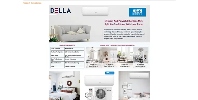 DellaUSA products are high-energy efficiency products that are easily available on various e-commerce websites. The products are specially designed for the cool and heating rooms. The ductless mini-split air conditioners of DellaUSA are highly-efficient as they are provided with smart sensors that help you to control them with remote access. They maintain the temperature and airflow of your living spaces according to climatic conditions.