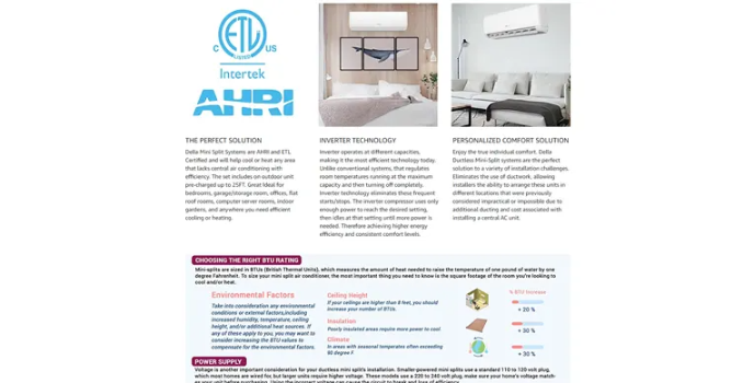 The ductless mini-split air conditioners are well-cooled, and they have energy-efficient products. Like portable split air conditioners, the DellaUSA products have sensor-based technology for temperature, which adjusts the temperature according to the need and according to the climate of the room. It has been certified by AHRI and has pre-charge products, which have a unique feature of these products.