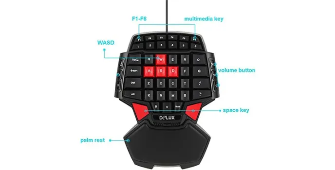 Deluxe T9 - The Most Comfortable Single Handed Gaming Keyboard