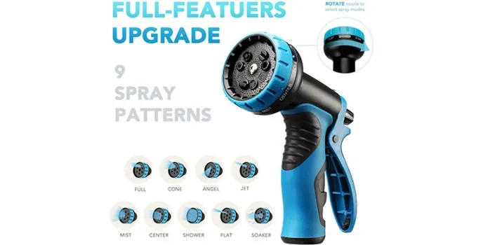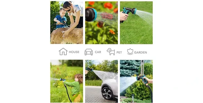 The Delxo Garden Hose comes with nine spray patterns on its nozzle; Angle, Shower, Soaker, Full, Mist, Flat, Cone, Center, and the Jet. The rotating bezel comes with a comfortable grip, and the sprayer does not slip. The product is excellent for homes, cars, floors, yards, washing, garden watering, plant watering, pet cleaning, etc. Moreover, the spray and rotating bezel is easy to use and can be used easily by kids and seniors, which isn't the same for the Gard Gaurd Hose and the Fitlife Garden Hose. The spray range of this hose ranges from 50cm-1200 cm under normal water pressure. The product is made of high quality and is very durable for any circumstance. The trigger buckle in this product helps keep the water flowing and saves any effort of draining out the water. The product also comes with a nylon storage pouch and metal hose holder, which helps store the product well.