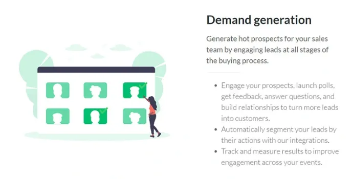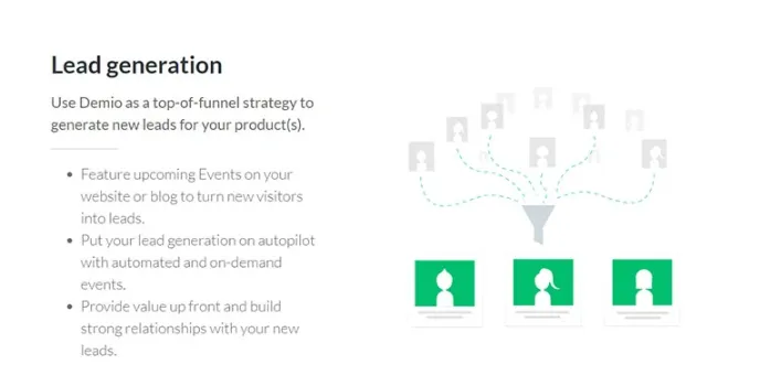 Demio is a webinar-hosting medium that makes way for marketing and customer education professionals to expand their efforts through live videos in a limited amount of time. For example, suppose you are looking to grow your business services by generating leads and customers, activating users, increasing conversions, and educating customers. In that case, Demio is the perfect webinar software for you.