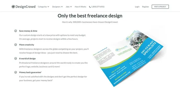 Design Crowd is a community-based design service launched almost a decade ago to provide business services through a huge community of over 700,000 designers. This freelance platform consists of over 100 social media design templates and tools and includes all services such as logo designing, business cards, t-shirts, website designing, cartoon character design, and envelope designing. The list of services is huge, and the Design Crowd Freelance Services are ideal for all job seekers.