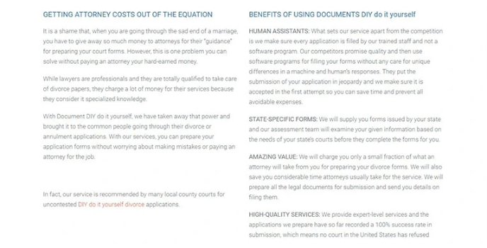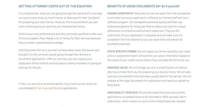 This led to rejection in the courthouse. And to avoid such circumstances, the Document-Do-It-Yourself online divorce services ensure that every form gets reviewed and evaluated by an expert team.