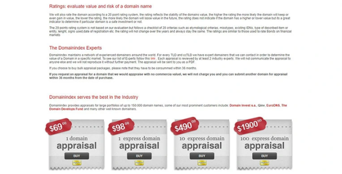 Domainindex.com - Flexible Online Appraisal Services For Domain Business