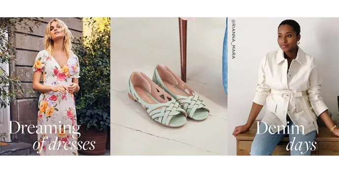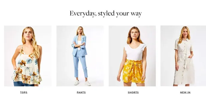 This popular Dorothy Perkins clothing website is ideal for shopping for anything of women's choice, from shirts to jeans and accessories, which let buyers choose clothes based on their body type via the category selection menu covering maternity, petite, plus size, and tail dresses. It also provides favorite shades and dress types, be it midi-dress or a-line skirt or full-length, based on your liking.
