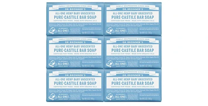 The liquid and bar soaps made by Dr Bonners are one of the best-unscented bar soaps for babies. These are made with natural ingredients and organic oils, which make them one of the safest products for use in the market. These soaps are made with organic oils that are gentle and effective. There is no addition of chelating agents, dyes, whiteners, or any kind of synthetic fragrances. The only natural, vegan ingredients are used which are gentle, mild, and effective. It is an all-natural soap that is safe for babies and sensitive skin.