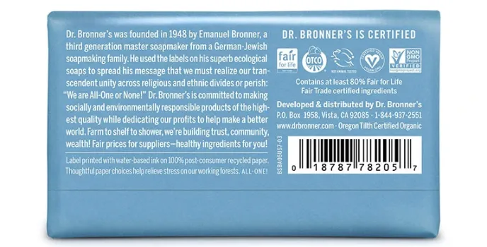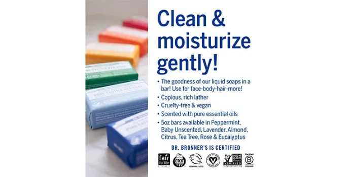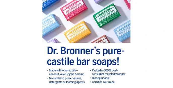 Dr Bonner’s soaps are good for the body as well as the planet. These soaps are fully biodegradable and use all-natural, vegan ingredients that are not at all harmful to the environment. The products and ingredients are never tested on animals and are cruelty-free. Dr Bonner’s Pure Castile Liquid and bar soaps are very safe for babies to use as compared to the Dial Basics Bar Soaps and Natural Essentials Liquid and Bar soaps. Moreover, Dr Bonner’s products are packaged in 100% post-consumer recycled wrappers and are biodegradable at the same time, which helps in preventing landfill build-up, which in turn has a positive impact on the environment.