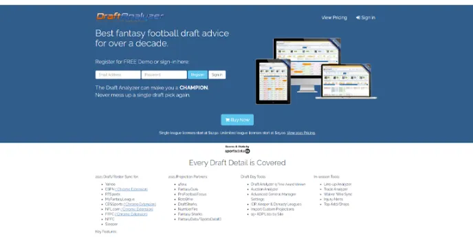 Draft in-season tools can Line up analyzer for various projections through top Add/drops and waiver wire synchronization. This best daily fantasy football site can draft day tools are advanced General Manager Settings, IDP, Keeper & dynasty Leagues, import custom projection, auction analyzer, and draft analyzer, etc.