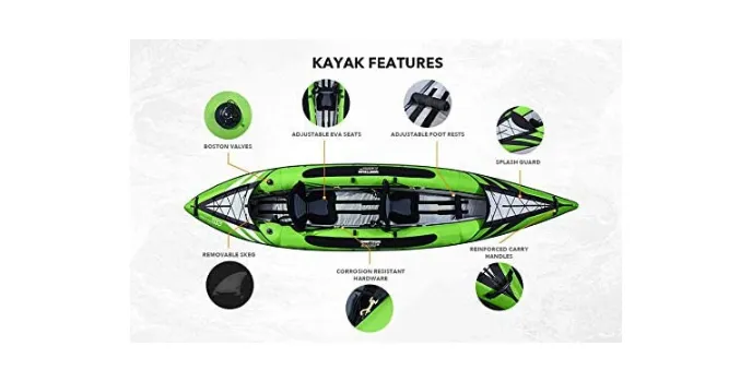 With a padded Back Seat, Driftsun Touring Kayak also has a package that includes two adjustable padded seats with high back support and a dual blade Kayak paddle. Besides, it comes with one child seat and one direct double action pump with 1 quick-release pin and 2-foot rest with one travel bag.