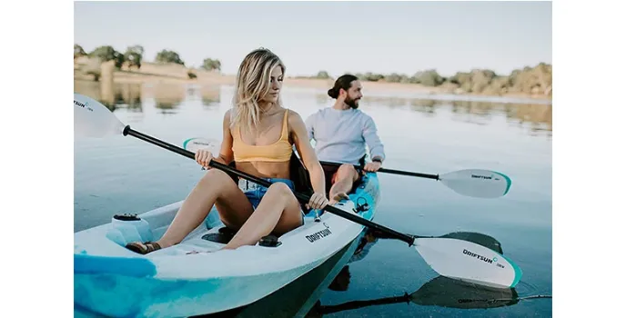 This Kayak is comfortable with four fixed handles and seats that are adjustable and can even be removed. The seats have back support, and ergonomic gripped paddles don't let you feel exhausted easily.