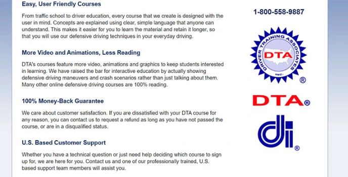 It has specialized driver improvement courses that help drivers to learn more and make an ideal driver. Driver Training Associates is inherited with a traffic safety and fleet training program.Interactive video lectures