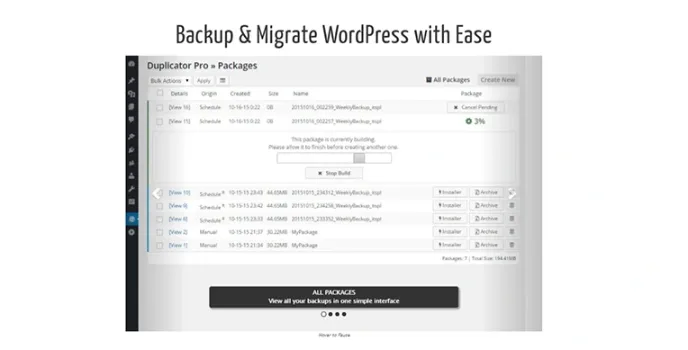 If you are looking for good wordpress plugins? Then Duplicator Pro is the best-suited backup plugin for you and your requirements. It offers the best features of data backup and restore. It is simple to use because of its user-friendly interface, even a beginner can also use the software without any disturbance.