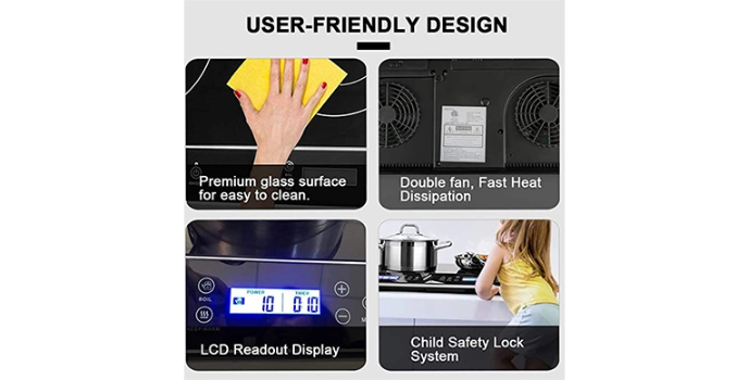 A child security lock system assists and protects from the risk of injuries and wounds such as scalding. The touch supervision panel is easy to regulate, and the timely heating of the cookware makes the cooking procedure faster and simpler. Without any open flame or heating component, food does not burn-on the glass manual induction cooktop so it is manageable to clean by simply wiping with a damp or wet towel.
