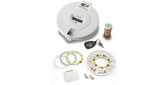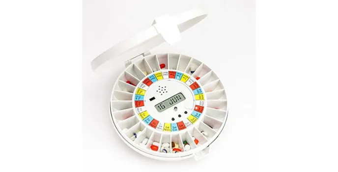 This pill dispenser comes with an alarm system as when the time is to take medicine, you get an alarm from them to remember it. You get a motorized 28 slot carousel in it. It has got the best features. E-Pill Medtime automatic pill dispensers also help in taking medicine at the proper time.