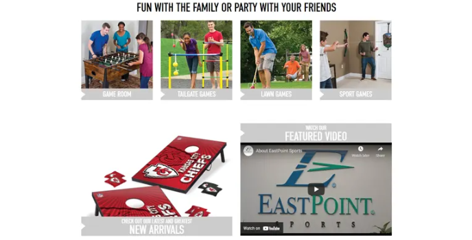 EastPoint Sports imports and markets indoor and outdoor recreational goods in the USA. The company offers licensed brands, including games like a tailgate, lawn, sports games, indoor game accessories, table games, Ping Pong Paddles, badminton nets, and basketball hoops, through retail and e-commerce channels.