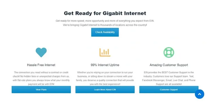 It offers speeds up to 1 GBPS so that your family or business can use the network as well. Also, EIN is known for its 5 Star and award-winning customer service. You can contact them via email or various social media platforms if you face any problems with your internet service.